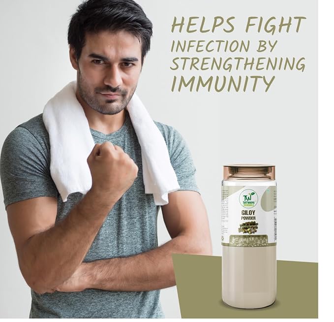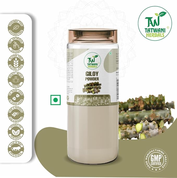 **Tatwani Herbals Giloy Powder - 100g** Embrace the natural healing properties of **Tatwani Herbals Giloy Powder**, made from 100% pure and organic Giloy (Guduchi). Known for its potent Ayurvedic benefits, this premium-quality powder helps reduce inflammation, detoxify the body, and support improved liver function. Renowned for its adaptogenic properties, it aids in regulating blood sugar levels, enhancing immunity, and promoting overall wellness. Whether added to water, teas, or smoothies, this versatile powder is a natural way to maintain balance, energy, and health. Incorporate Tatwani Herbals Giloy Powder into your daily routine for a rejuvenated and healthier you.