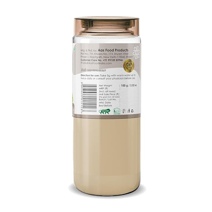 TATWANI HERBALS Triphala Powder (100g) is a premium, organic blend of three natural fruits, known for its traditional uses in promoting overall well-being. This finely ground Triphala Churna Powder can be added to your daily routine to support digestive health, energy levels, and vitality. It’s also popular for its potential benefits in hair care, promoting healthier-looking hair. With its pure, organic composition, this Triphala Powder offers a natural way to enhance both your internal and external wellness. Enjoy the natural goodness of this 100g pack for a balanced lifestyle.